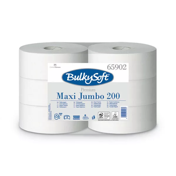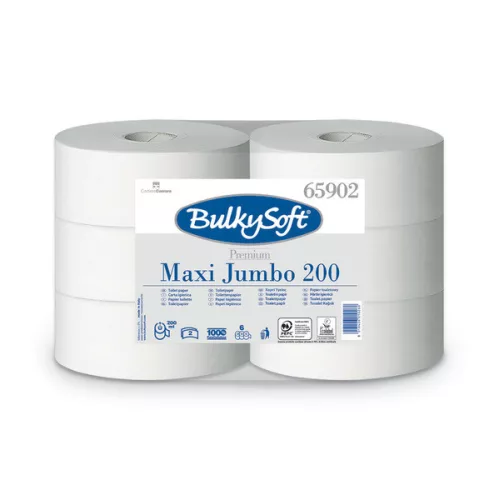 BulkySoft Advanced Midi (ONE) laponkénti adagolású belsőmagos toalettpapír (wc papír), 20cm/200 méter, 2 rétegű, hófehér, 6 tekercs/zsák