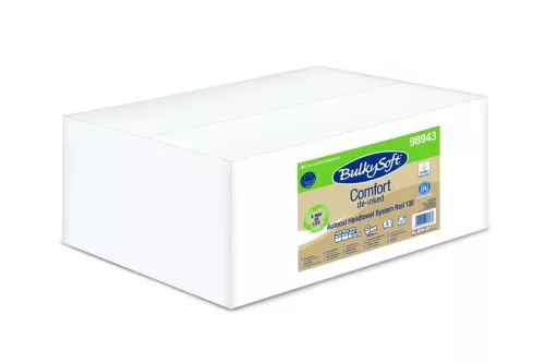 BulkySoft Comfort Autocut laponkénti adagolású kéztörlő, 18 cm, 2 rétegű, fehér, 130 méter/tekercs, 6 tekercs/doboz