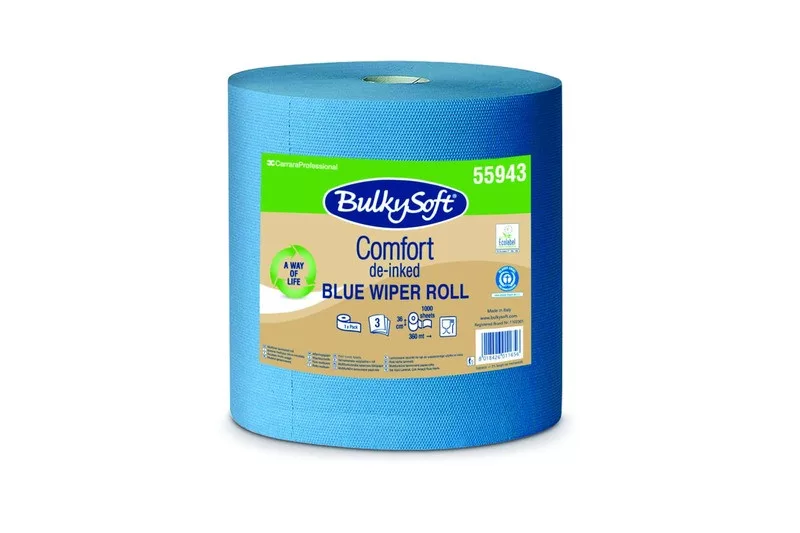 BulkySoft Comfort Wiper Roll ''1000'' tekercses ipari kéztörlő, 38 cm átmérő, 360 méter, 1000 lap, 3 rétegű, kék, 1 tekercs/zsák