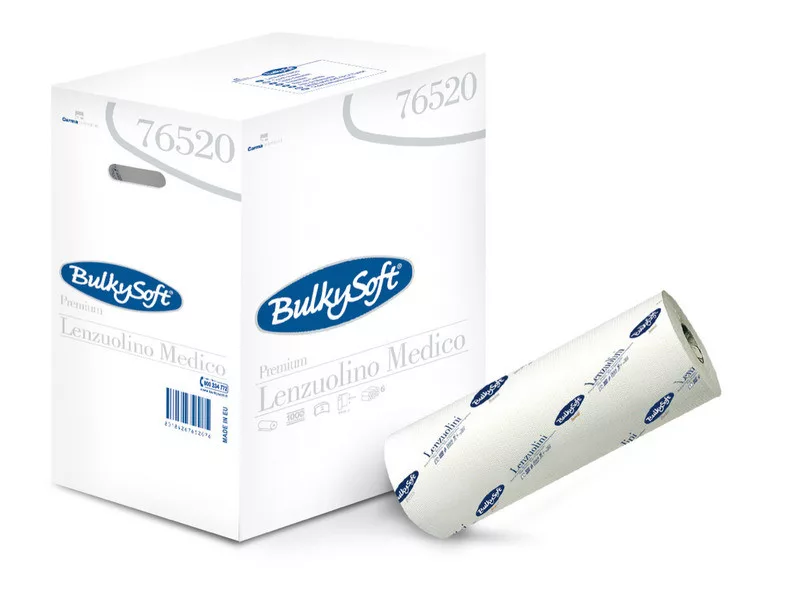BulkySoft Excellence orvosi lepedő, 60 cm széles, 80 méteres, 2 rétegű, hófehér, 100% cellulóz, 6 tekercs/doboz