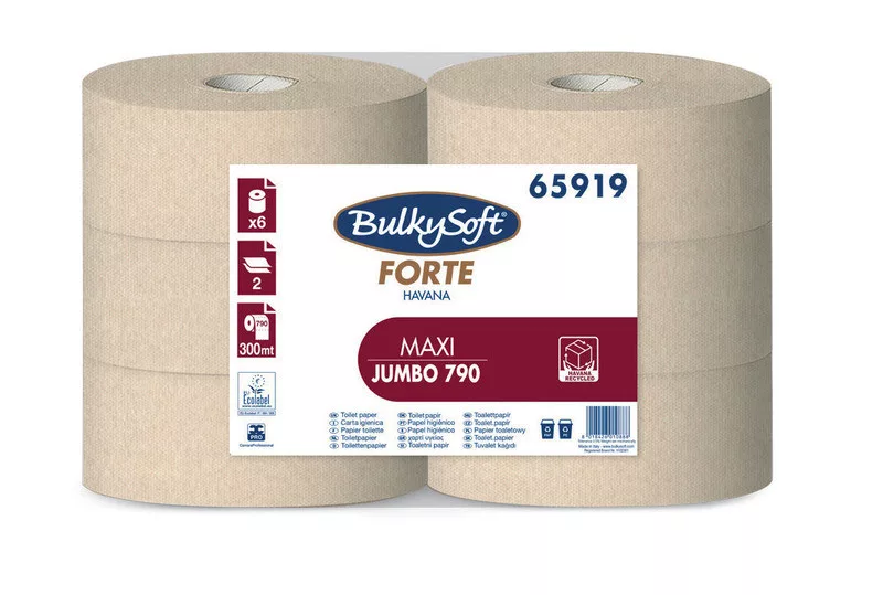 BulkySoft Forte Havana Midi Jumbo toalettpapír (wc papír), 25 cm, 2 rétegű, barna, 300 méter/tekercs, 100% újrahasznosított, 6 tekercs/zsák