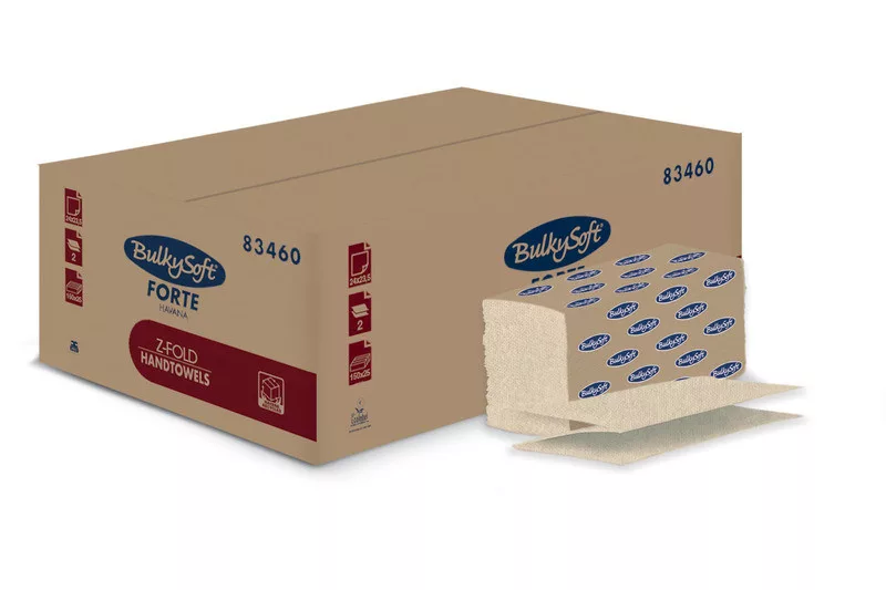 BulkySoft Forte Havana Z hajtogatott kéztörlő, 2 rétegű, barna, 23,5x24 cm, 150 lap, 100% újrahasznosított, 25 csomag/karton