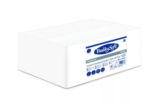 BulkySoft Premium Autocut laponkénti adagolású kéztörlő, 18 cm, 2 rétegű, hófehér, 150 méter/tekercs, 100% cellulóz, 6 tekercs/doboz