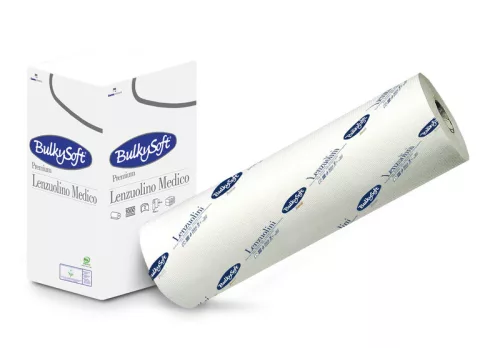 BulkySoft Premium orvosi lepedő, 50 cm széles, 80 méteres, 2 rétegű, hófehér, 100% cellulóz, 6 tekercs/doboz, KIFUTÓ!