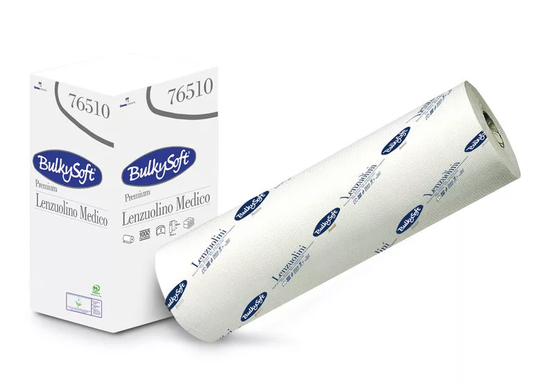 BulkySoft Premium orvosi lepedő, 60 cm széles, 70 méteres, 2 rétegű, hófehér, 100% cellulóz, 6 tekercs/doboz