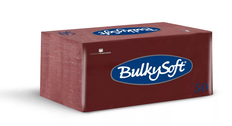BulkySoft szalvéta bordó, 2 rétegű, 33x33 cm, 50 lap, 1/8 hajtott, 40 csomag/karton