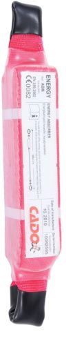 * 45 mm széles, 160 mm hosszú, piros poliamid alapanyagú energiaelnyelő hevederszalag mindkét végén hurokkal * a polietilén védőréteggel bevont szalag össze van hajtogatva és biztonsági varrással többszörösen összetűzve (ennek lebomlása emészti fel a zuhanás energiáját) * statikai szilárdsága 15 kN, dinamikus fékereje maximum 6 kN (ennél nagyobb erőhatás nem érheti a zuhanás megállításakor a használót) * ENERGY (ABM): összehajtott energiaelnyelő hevederszalag mindkét végén hurokkal, biztonsági varrással, védőréteggel