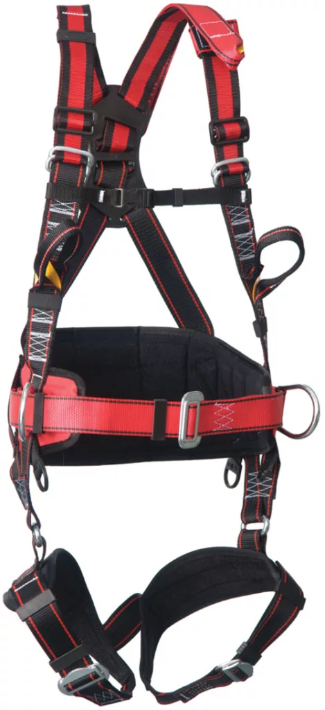 * testhevederzet munkaövvel: 45 mm-es poliészterből rugalmas váll-, állítható comb- és mozgatható derékhevederek (moving belt) * két munkahelyzet beállító oldalsó-, két hevederszalagos mellső- és egy fém hátsó bekötési pont, 40 cm-es hosszabbító toldalékkal * komfortpárnázott munkaöv, kényelmes combhevederek, öt szerszámtartó gyűrű * súlya: 1880 g