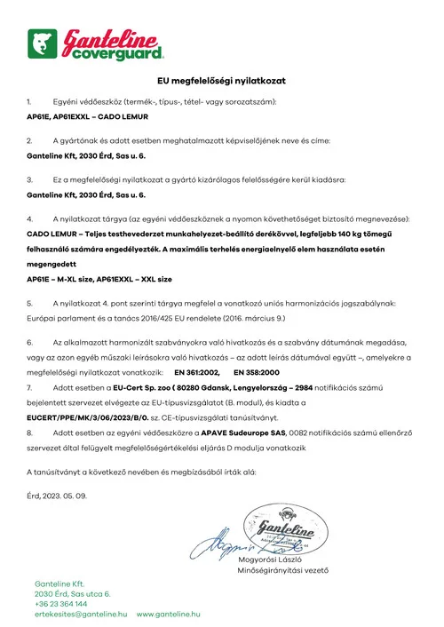 CADO LEMUR RUGALMAS HEVEDER+ÖV, HÁTSÓ TOLDALÉKKAL_XXL