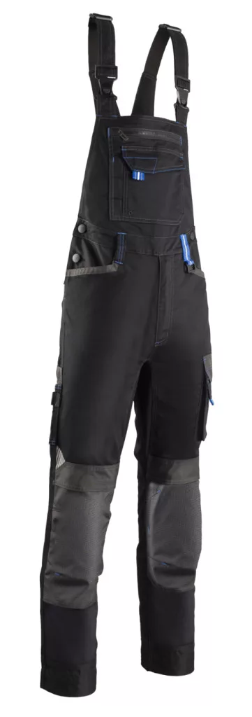 -Twill (sávoly szövés): 65% poliészter/ 32% pamut / 3% elasztán - 250 g/m2 + poliamid/sztreccs betétek + díszített Oxford 300D Magas hátrész 9 zseb 2 szerszámtartó hurokGumírozott vállpántok Elasztikus derék Sztreccs betét a lábköznél Térdvédő zsebek Kontraszt színű elemek Száron még 5 cm-es lehajtási lehetőségRegular fitEN 14404: 2. típus