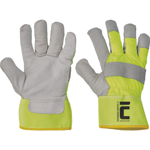 • melegen bélelt kombinált kesztyű • marha színbőr tenyér • poliészter szövet kézfej • merev mandzsetta • figyelemfelkeltő sárga és narancs színekben