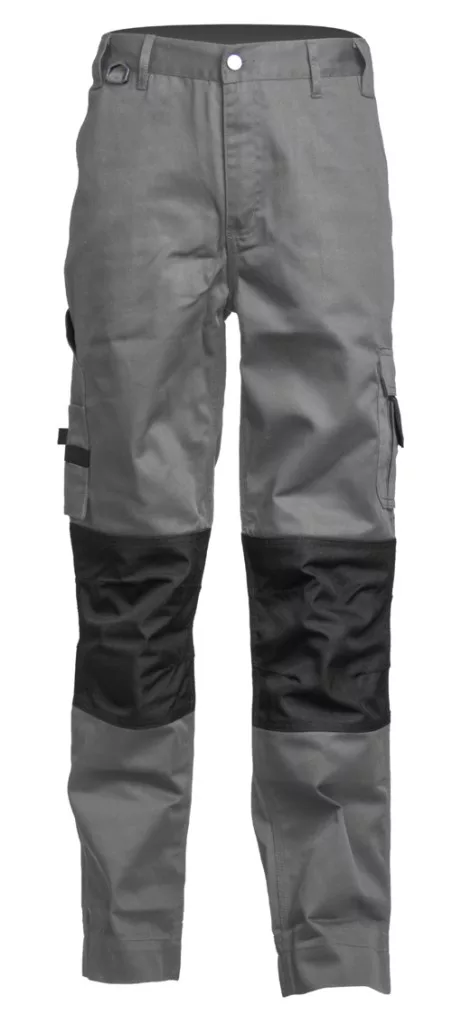 * 285 g/m2 vastag, lánckötésű, 35% természetes pamutvászon, 65% kopásálló poliészter* egyenes fazonú, kényelmes szürke deréknadrág nagy szakítószilárdságú, erős anyagból* praktikus zsebek, kulcstartók és mobil kiegészítők (térdeplőbetét)megerősített, háromszoros varrás a nadrág teljes hosszábangumibetétes derék * két-két oldal-, far-, szerszám-, egy telefon-, valamint egy combzseb rávarrt hajtókával és egyéb rekeszekkel)