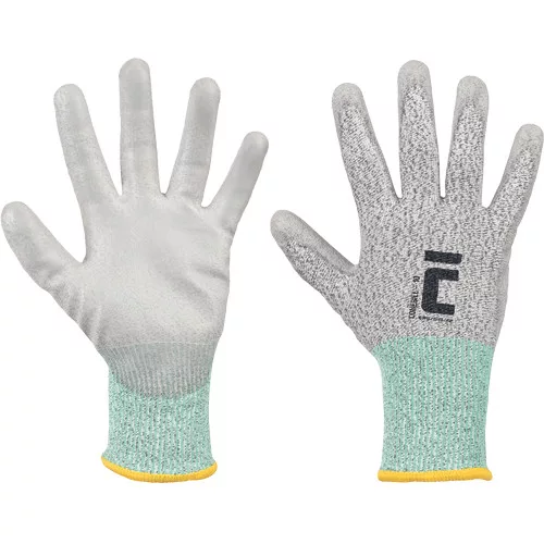 • kötött, varrás nélküli kesztyű • C szintű vágásbiztonság • szürke PU réteg a tenyéren és az ujjakon
