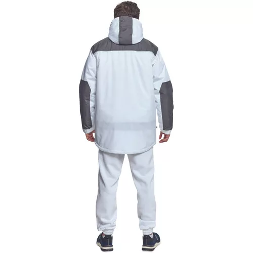 • férfi kapucnis télikabát • polár bélésű gallér • hosszított hátrész • 2 cipzáras mellkasi zseb • 2 cipzáras oldalzseb • 1 tépőzáras belső zseb • a kabát alja húzózsinórral állítható • tépőzárral állítható mandzsetta • levehető kapucni