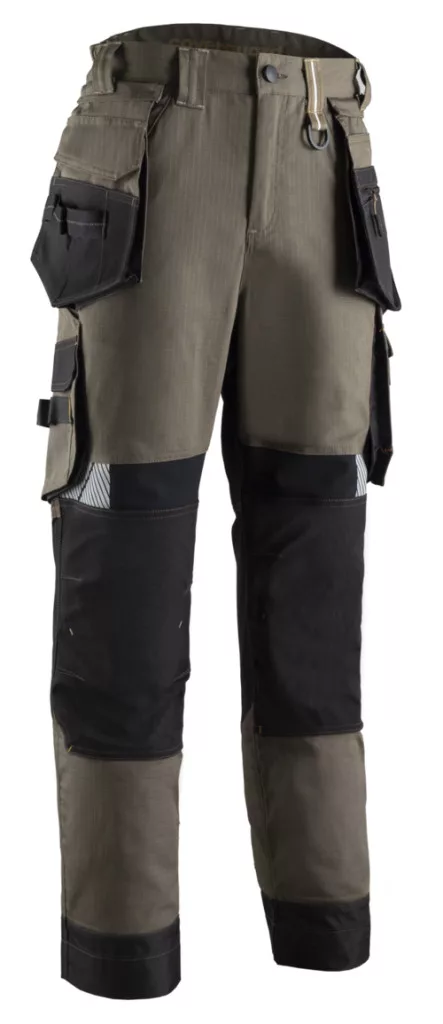 Ripstop: 60% pamut / 40% PES - 280 g/m2 + poliamid / sztreccs betétek + Oxford poliamid/sztreccs - 300D - sötétszürke/narancsHosszított hátrész 10 zseb 2 szerszámtartó hurok Sztreccs betétek: lépésbetét + térd felett + térd mögött Oxford sztreccs alapanyagú térdvédő zsebek kontrasztos színek YKK cipzár a sliccen Láthatósági díszcsíkok tripla biztonsági varrás A száron még 5 cm-es lehajtási lehetőségRegular fit EN 14404: Type 2