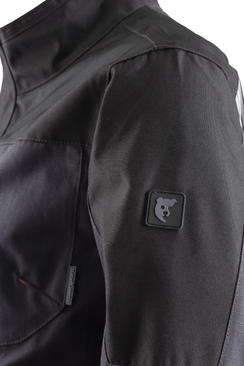 Ripstop: 60% pamut / 40% PES - 280g/m² + poliamid/sztreccs betétek + Oxford 600D - dohány/karamell színben Hosszított hátrész5 zseb Álló gallér Fedett YKK cipzár Tépőzárral állítható mandzsetta Sztreccs zóna hátul vállrésznél Fényvisszaverő díszcsíkok