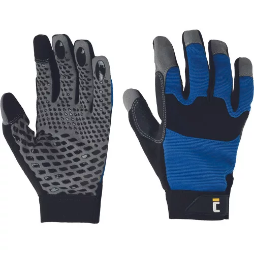 • szintetikus bőr, spandex, nylon, neoprén és poliészter anyagok felhasználásával készült kesztyű • érintőképernyővel való munkához • csúszásmentes PVC-erősítés a hüvelykujj és a mutatóujj között • kiváló fogás a tenyér és az ujjak szilikon pöttyözésének köszönhetően • tépőzáras mandzsetta