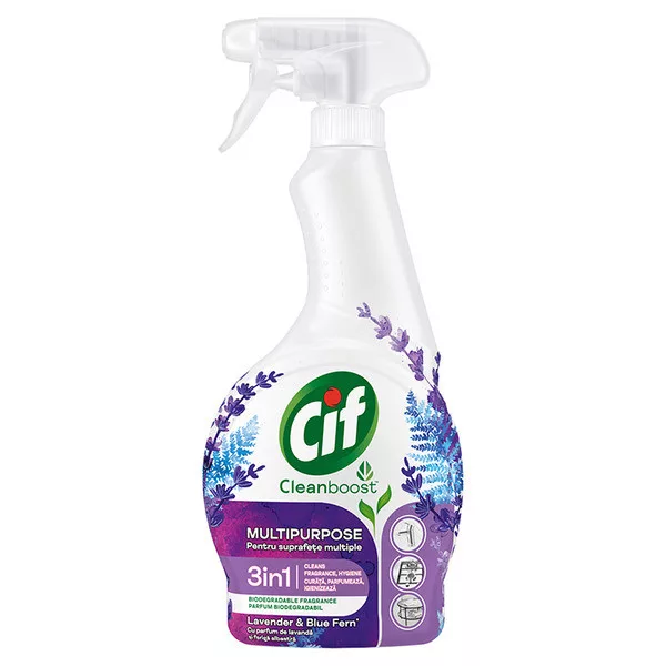 Cif Cleanboost 3in1 általános tisztító spray levendula és kék páfrány illattal, 500 ml