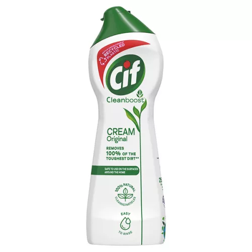 A mára vitathatatlanul klasszikussá vált, multifunkcionális Cif súrolókrém kíméletes a felületekkel, de kíméletlen a makacs szennyeződésekkel.A Cif súrolókrém áthatol a makacs szennyeződéseken, mint az odaégett zsírfoltok és ételmaradékok, fürdőszobai vízkő lerakódások; állagának köszönhetően könnyű leöblíteni, így hamar élvezheted a tökéletesen ragyogó tisztaságot.Előnyök:> Hatékony súrolókrém a makacs szennyeződések ellen> 100%-os kosz eltávolítás> 100% természetes tisztító szemcsékkel> Érj el ragyogó tisztaságot kis erőfeszítésselKönnyű használat:Vidd fel a megtisztítani kívánt felületre egy nedves ronggyal, töröld át, majd öblítsd le.1. Nyisd ki! 2. Vidd fel! 3. Súrolj! 4. Ragyogó tisztaság!Használd otthonod különböző felületein:Először próbáld ki egy kevésbé látható részen, azonnal öblítsd le, és ne dörzsöld. Ne használd textilen, kényes, új, festett vagy alumínium felületeken!Fedezz fel új ötleteket:Tudtad, hogy a Cif súrolókrémmel eltávolíthatod kedvenc fehér edzőcipődről a koszt← Scanneld be a QR kódot és fedezz fel ehhez hasonló új ötleket, melyekre még lehet eddig nem is gondoltál. Miért a Cif súrolókrémet válaszd←Mindössze egy apró cseppre lesz szükséged, hogy teljesen eltávolíts mindenféle csúnya szennyeződést, még azokat is, amelyek tisztítása lehetetlennek tűnik, mint például a berakódott zsír, az edzőcipőn lévő koszos sár vagy a falak piszkos nyomai.A Cif már több évtizede elhivatott, hogy gondoskodjon felületeink hatékony tisztításáról. Úgy fejlesztjük tisztítószereinket, hogy azok a környezet számára fenntarthatóak legyenek.Összetevők:<5% anionos felületaktív anyagok, nem ionos felületaktív anyagok, phenoxyethanol, szappan, illatanyag, linalool, citronellol, hexyl cinnamalBiztonsági figyelmeztetés:Súlyos szemirritációt okoz. Gyermekektől elzárva tartandó. SZEMBE KERÜLÉS ESETÉN: Óvatos öblítés vízzel több percen keresztül. Adott esetben kontaktlencsék eltávolítása, ha könnyen megoldható. Az öblítés folytatása. Ha a szemirritáció nem múlik el: Orvosi ellátást kell kérni. Ne használja textilen; Kényes, új, festett vagy alumínium felületeken először próbálja ki egy kevésbé látható részen, azonnal öblítse le, és ne dörzsölje. Tisztítószer kemény felületekre. Ne nyelje le. UFI: 10E8-E0W5-S00T-MS56.Tárolás:Szobahőmérsékleten tárolandó. Felbontás utáni felhasználhatóság időtartama 12 hónap.Kiszerelés: 250 ml/flakon.Csomagolás: 1 db, gyűjtőcsomagolás: 16 db/karton.