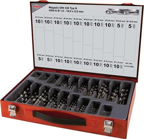 Csigafúró tár DIN 338 N típusú 1-10mm lépésekben 0,5mm HSS 170 db
