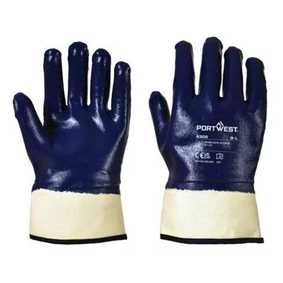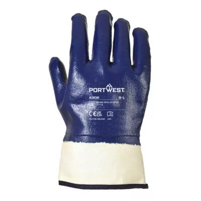 Rendkívül strapabíró, csuklóig mártott nitril bevonattal készül, mely ellenáll az éles tárgyaknak, vágásnak, szúrásnak és szakításnak.