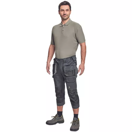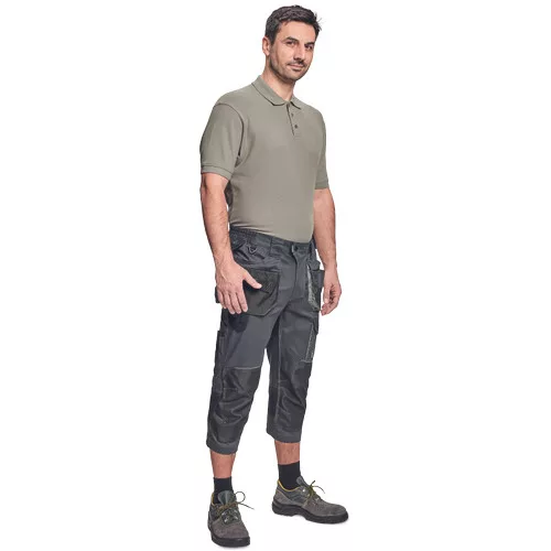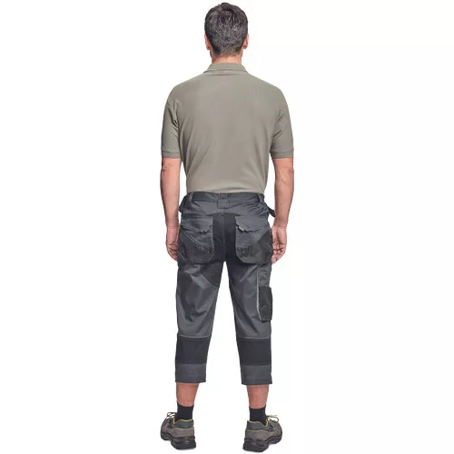 Dinamikus vonalvezetésű, modern szabású férfi 3/4-es nadrág, rugalmas, innovatív TRIFIBETEX® anyagból. Alacsony, gumírozott derékkal készül, láb- és üleprészen tartós, tripla varrásokkal. Praktikus kialakítás: tágas, multifunkcionális első zsebek szerszámtartó pánttal, 2 hátsó zseb Oxford erősítéssel, a combon telefontartó zseb tépőzáras zsebfedővel, külön zsebek vonalzónak, késnek, kalapácsnak, egyedi repülőzseb, D-gyűrű, és szerszámtartó hurok a derékpánton. A munkaruha színeivel harmonizáló fényvisszavető elemekkel egészítettük ki.