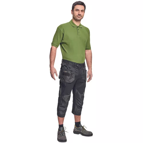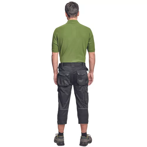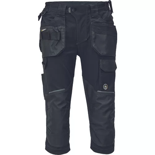 Dinamikus vonalvezetésű, modern szabású férfi 3/4-es nadrág, rugalmas, innovatív TRIFIBETEX® anyagból. Alacsony, gumírozott derékkal készül, láb- és üleprészen tartós, tripla varrásokkal. Praktikus kialakítás: tágas, multifunkcionális első zsebek szerszámtartó pánttal, 2 hátsó zseb Oxford erősítéssel, a combon telefontartó zseb tépőzáras zsebfedővel, külön zsebek vonalzónak, késnek, kalapácsnak, egyedi repülőzseb, D-gyűrű, és szerszámtartó hurok a derékpánton. A munkaruha színeivel harmonizáló fényvisszavető elemekkel egészítettük ki.