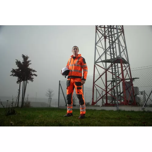 • jólláthatósági (HV), 4 irányban rugalmas poliészter stretch szövet • szegmentált fényvisszaverő csíkok