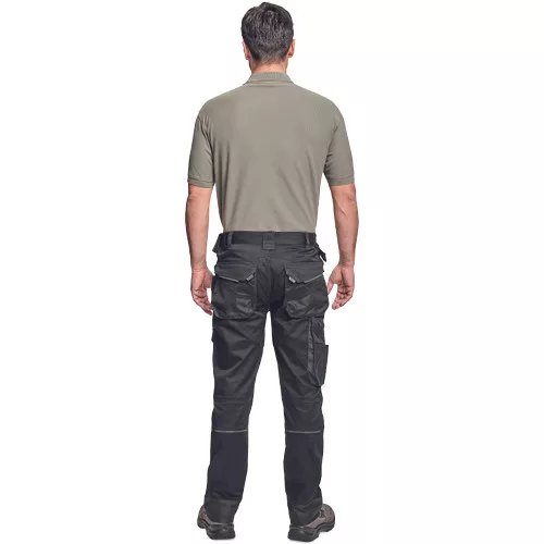 • dinamikus vonalvezetésű, modern szabású férfi nadrág, rugalmas, innovatív TRIFIBETEX® anyagból. • ergonomikus szabás • alacsony, gumírozott derék • tartós tripla varrás a szárakon és az üleprészen • megerősített térdrész, térdvédőtartó zsebbel • tágas multifunkcionális első zsebek szerszámtartó pánttal • 2 hátsó zseb Oxford erősítéssel • a száron telefontartó zseb tépőzáras zsebfedővel • külön zsebek vonalzónak, késnek, kalapácsnak • egyedi kivitelű repülőzseb • D-gyűrű • szerszámtartó hurok a derékpánton • fényvisszavető részletek • leengedhető szárak