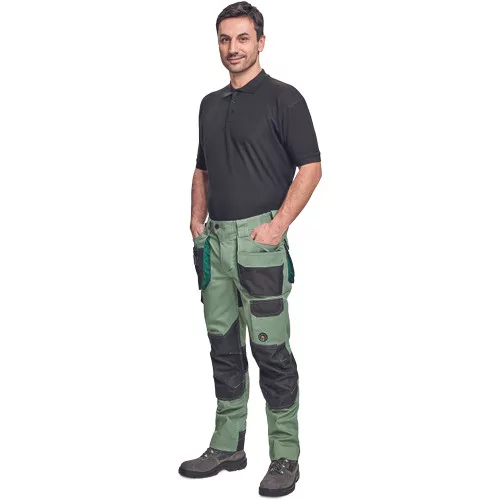 • dinamikus vonalvezetésű, modern szabású férfi nadrág, rugalmas, innovatív TRIFIBETEX® anyagból. • ergonomikus szabás • alacsony, gumírozott derék • tartós tripla varrás a szárakon és az üleprészen • megerősített térdrész, térdvédőtartó zsebbel • tágas multifunkcionális első zsebek szerszámtartó pánttal • 2 hátsó zseb Oxford erősítéssel • a száron telefontartó zseb tépőzáras zsebfedővel • külön zsebek vonalzónak, késnek, kalapácsnak • egyedi kivitelű repülőzseb • D-gyűrű • szerszámtartó hurok a derékpánton • fényvisszavető részletek • leengedhető szárak
