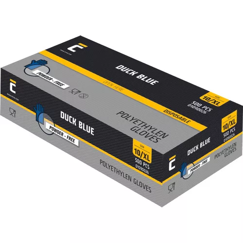 • élelmiszerekkel való rövid idejű érintkezésre alkalmas, 0,018 mm polietilén fóliából készült, egyszerhasználatos kesztyű