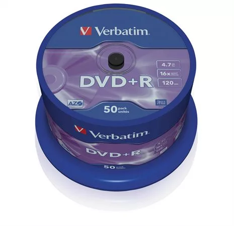 DVD+R lemez, AZO, 4,7GB, 16x, 50 db, hengeren, VERBATIM