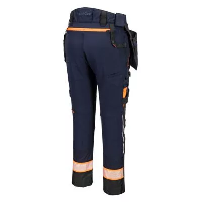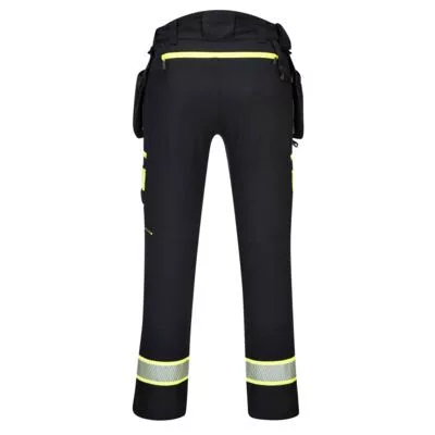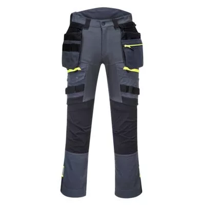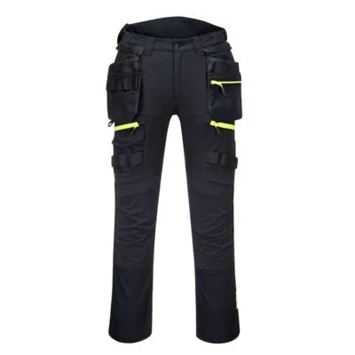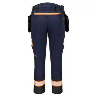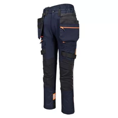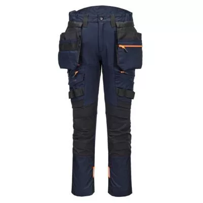 A DX4 lengőzsebes nadrág okosan megtervezett, a dinamikus 4X stretch anyag célzott elhelyezésével biztosítja a maximális mozgástartományt munka közben. A nadrág hátul magasított derékpánttal és oldalsó elasztikával rendelkezik, amely minden munkapozícióban védelmet biztosít. Az előrehajló, felülről tölthető, állítható térdpárnazsebek, a nagyméretű elülső zsebek és a többfunkciós cipzáras combzsebek biztonságos tárolást biztosítanak a telefon, a tollak és a szerszámok számára. Háromszoros varrás a maximális tartósság érdekében.
