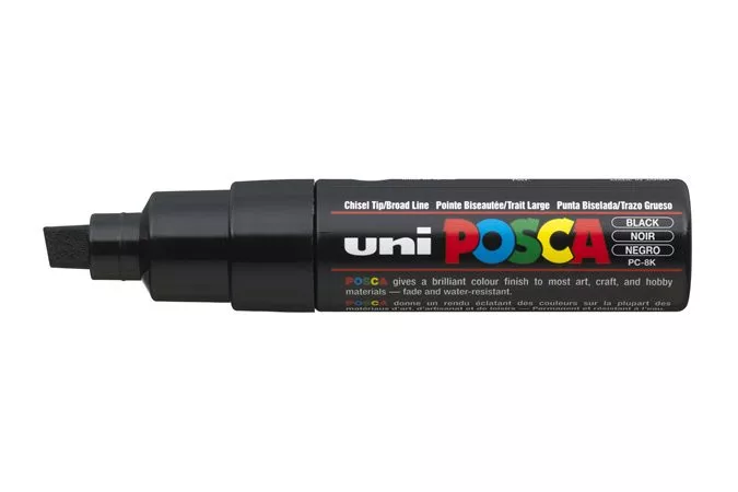Dekormarker, 8 mm, vágott, UNI "Posca PC-8K", fekete
