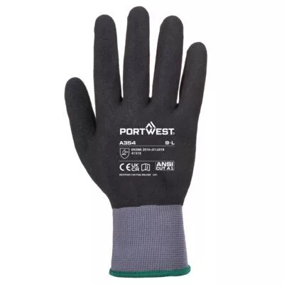 A DermiFlex Ultra a 3/4-ig mártott A352-hez képest a teljes mártásnak köszönhetően további védelmet nyújt víz, olaj és zsír ellen. A szuper könnyű, 15 mm-es nylon bélés puha nitrilhabos tenyérrel rendelkezik a tökéletes kényelem és kézügyesség érdekében.