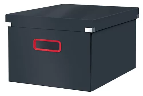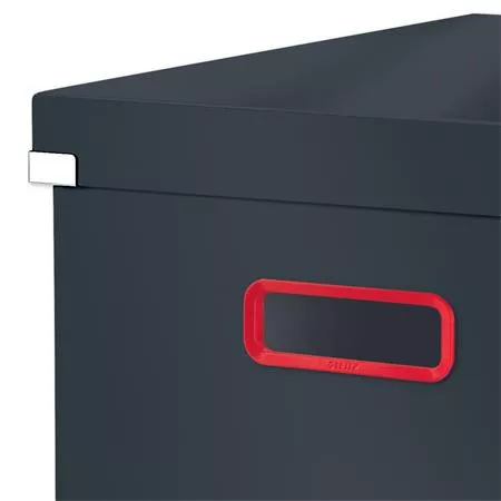 -a tetővel és praktikus, piros kivágott fogantyúval rendelkező Click & Store Cosy karton tárolódoboz tökéletes A3 méretű dokumentumok, billetyűzet, laptop és egyéb nagyobb méretű személyes tárgyak tárolásához