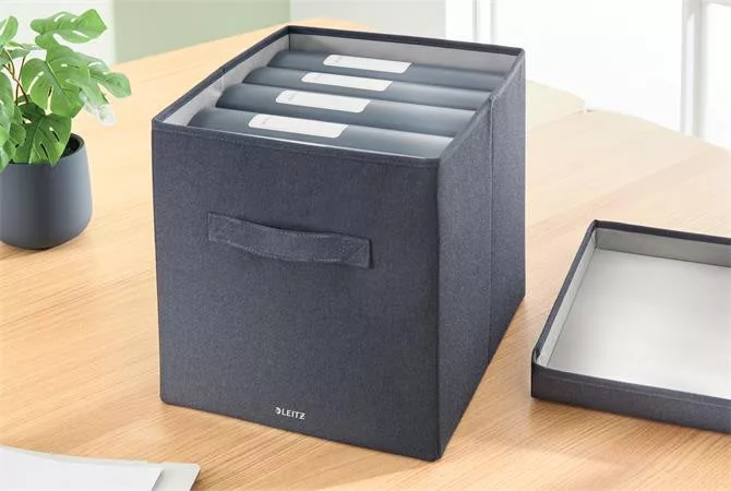 Érezd magadat otthon, bárhová is sodorjon a napod a Leitz textil tároló doboz termékcsaláddal! A Leitz szövetborítású tárolódoboz termékcsalád az otthoni stílusú kényelmet és a prémium minőséget ötvözi a pozitív és produktív munkakörnyezet megteremtése érdekében.