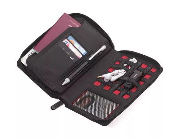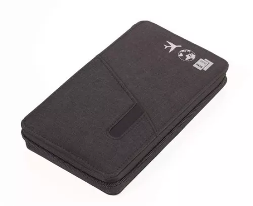 Dokumentumtároló, utazáshoz, RFID védelemmel, golyóstollal, TROIKA "Cargosafe", sötétszürke