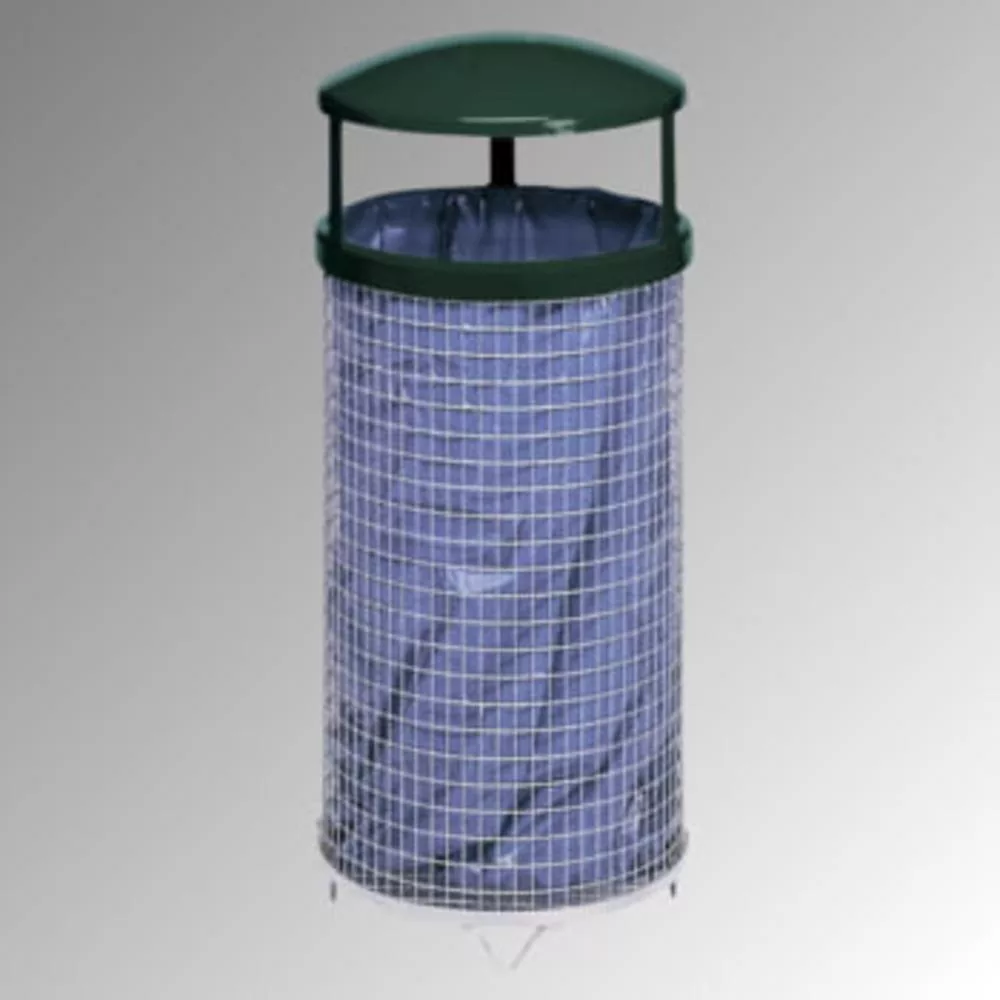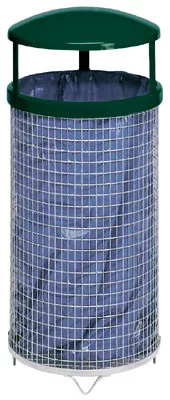 Drótkosár, tűzihorganyzott, ponthegesztett hálóból, 15x25 mm-es szembőség, piros tölcsérbetéttel ral 3000, átmérő x magasság 405x660 mm, kosártérfogat. kb. 65