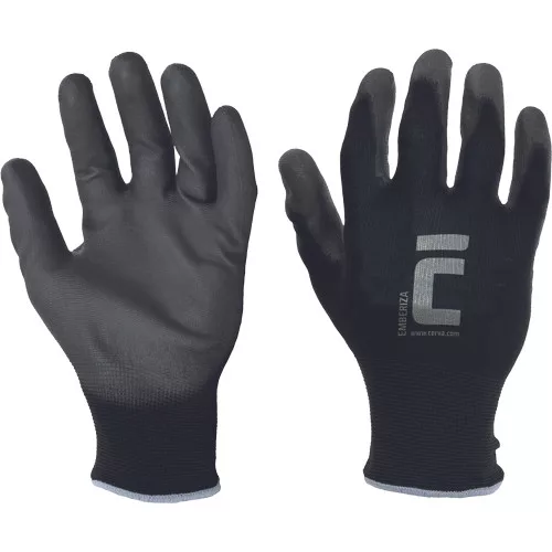 • varrat nélküli kötött poliészter kesztyű PU-ba mártva • légáteresztő, kiváló tapintás és fogásbiztonság száraz körülmények között • tűfinomság: 13 gg
