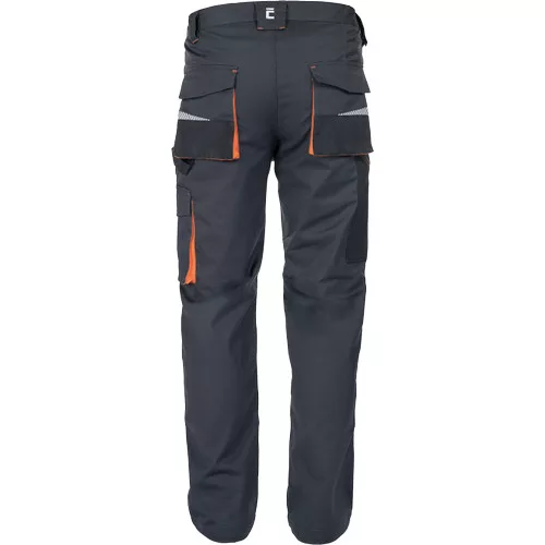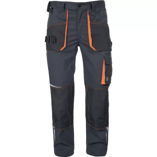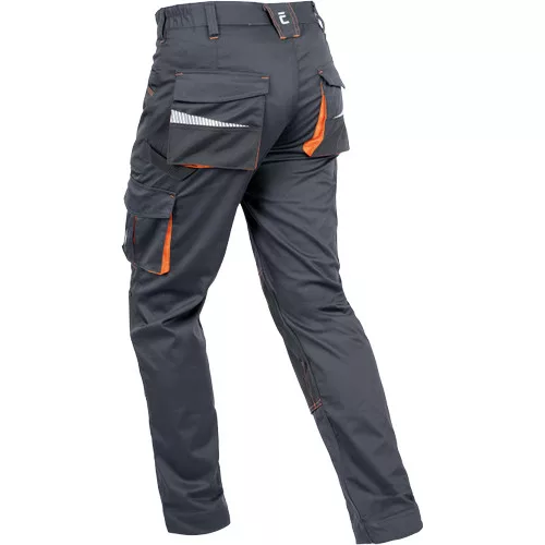 • férfi munkanadrág, rendkívül tartós rugalmas anyagból • elasztikus derékkal • multifunkcionális zsebek • Oxford 600D megerősített térdzsebek térdvédők behelyezéséhez • nyomtatott szegmensekre bontott fényvisszavető részletek • állítható szárhossz