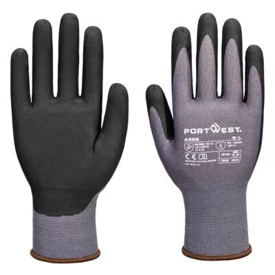 Az A356 kiváló ESD-védelmet, élettartamot és precizitást biztosít. Ez a lélegző 15 gauge kötésű kesztyű nejlonból, elasztánból, szénszálból és ultra-vékony nitril mikrohab bevonattal készült, és kiváló tapadást, tapintásérzékenységet és kényelmet biztosít. Az élettartam érdekében megerősítettek, így ideálisak elektronikai és érzékeny környezetben.