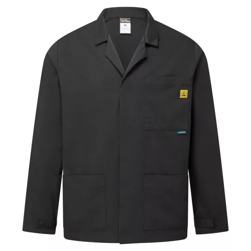 Anyagában antisztatikus kabát modell, mely megelőzi az elektrosztatikus kisüléseket. Kényelmes, ugyanakkor kiemelkedő védelmet biztosít. Jellemzői közé tartozik a rejtett patenros elülső rész, két alsó zseb, egy mellzseb és állítható mandzsetta.