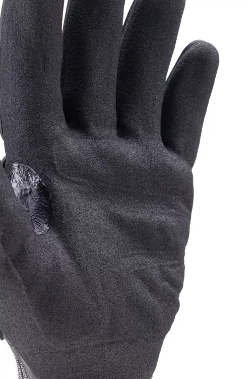 Szürke, varrás nélküli 13-mas kötésű kesztyű, HDPE-vel, elasztánnal erősítve. Duplán mártva nitrillel: az ökölcsont és az ujjak sima, a tenyeren érdesített nitril felülettel. A mutató és hüvelykujj között nitrillel erősítve, tépőzárral állítható mandzsetta