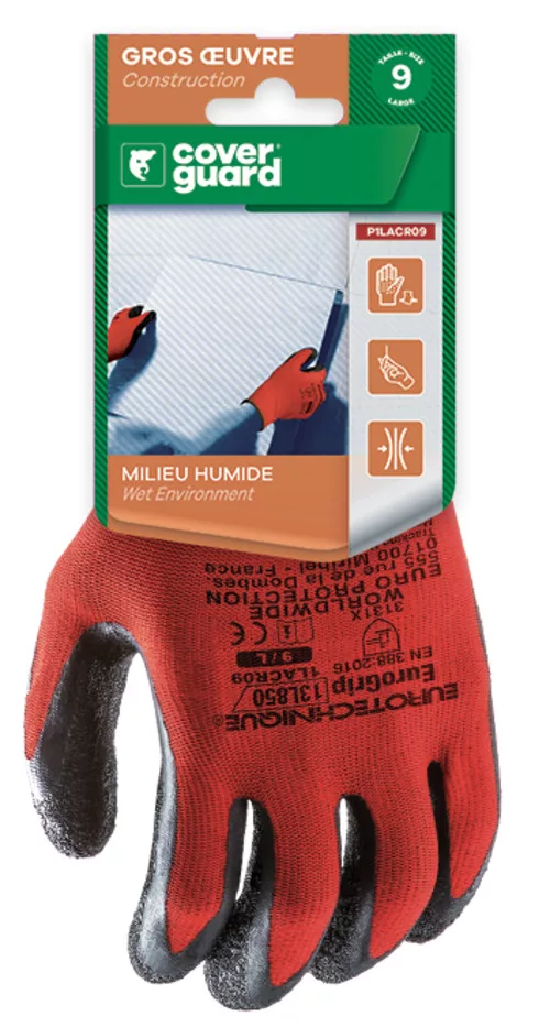 * 13-as kötésű, piros poliészter védőkesztyű * tenyerén fekete, emelt szinten csúszásbiztos latex mártás * kiváló fogásbiztosság és extra tapadás * szellőző kézhát, gumírozott mandzsetta