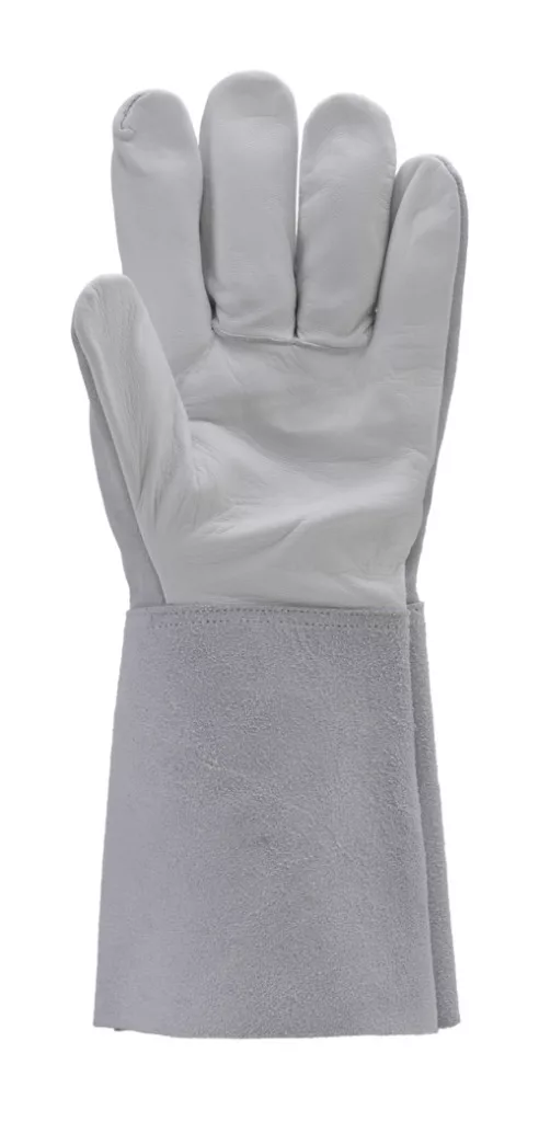 Teljes kecske színbőr tenyér és hasítékbőr hátrészPara-aramid szálas varrás, gumírozott hátrész15 cm hosszú biztonsági mandzsetta hasított bőrből