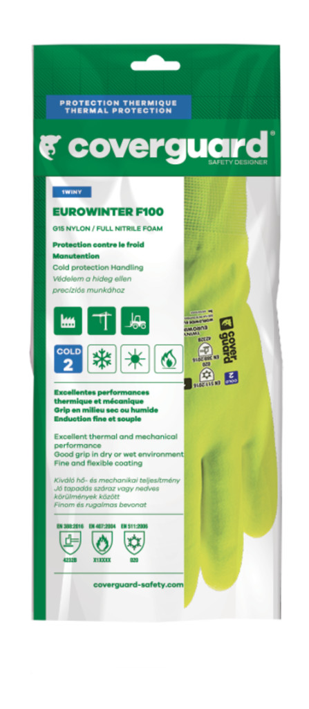 Sárga, varrás nélküli kesztyű poliamiddal erősítve, 15-ös kötésű.Sárga akril frottír bélés, 10-es kötésűSárga nitril-habbal mártva teljes felületénKötött mandzsetta