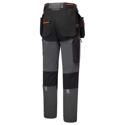 Az EV4 könnyű levehető lengőzsebes nadrág továbbfejlesztett ergonómikus kialakítású, lézervágott szellőzéssel rendelkezik az optimális légáramlás érdekében munka közben. Emelt derékkal és oldalsó gumirozással, kiváló védelmet nyújt minden munkapozícióban. A nadrág állítható, felülről tölthető térdpárnazsebeket, tágas elülső zsebeket és sokoldalú, cipzáras combzsebeket tartalmaz a telefonok, tollak és szerszámok biztonságos tárolására. Háromszoros varrás a maximális tartósság érdekében.