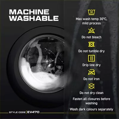 Max mosási hőfok 30°C, kímélő mosás Fehérítés tilos Gépi szárítás tilos Felcsíptetve szárítandó, csavarás nélkül Vasalni tilos Nem vegytisztítható.
