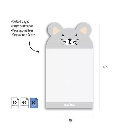 Egérkés öntapadó jegyzettömb, 90×165 mm, 60 lap, APLI Back2Fun, szürke